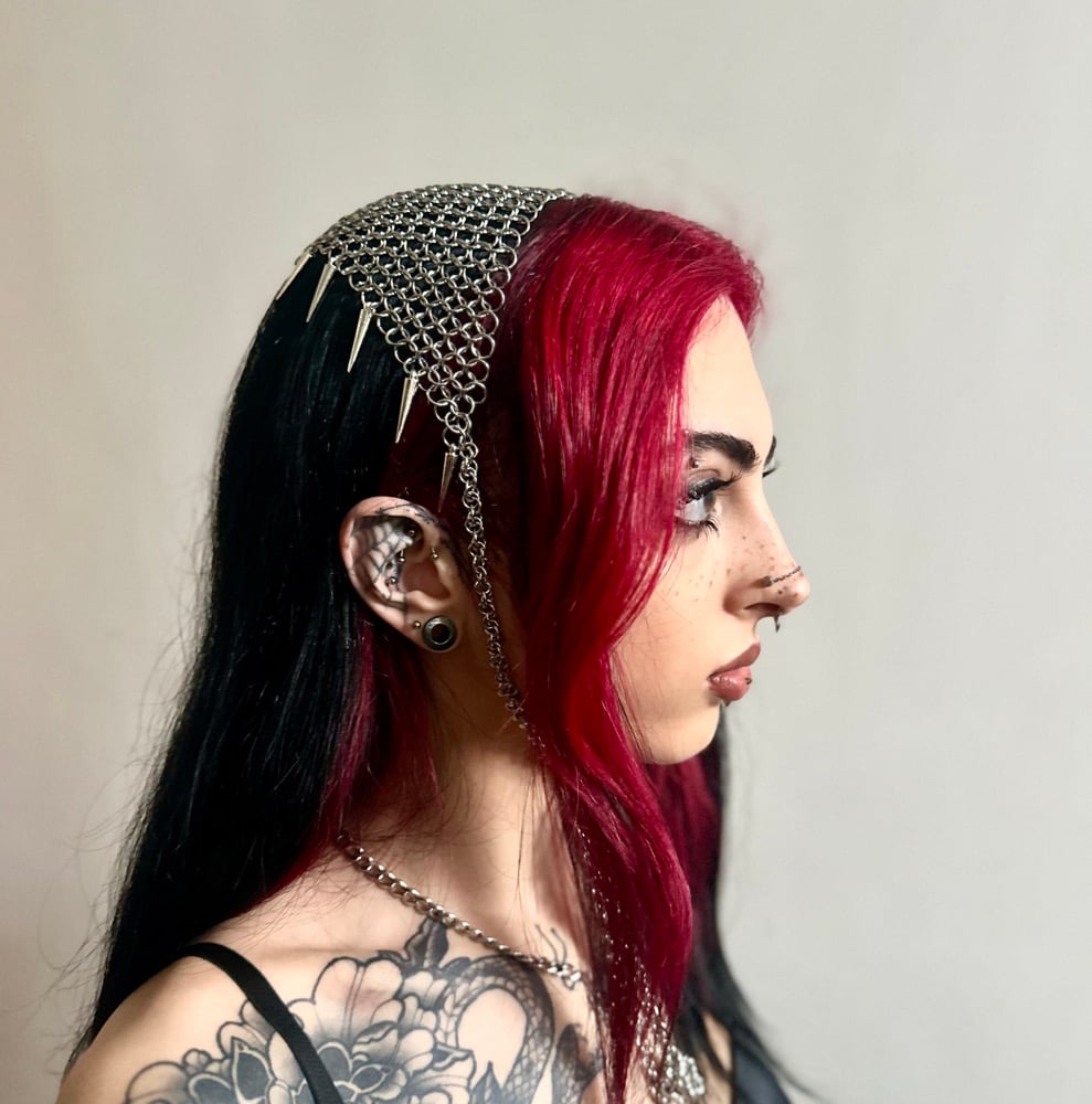 This handcrafted chainmail headpiece is woven from durable stainless steel rings, creating a striking blend of medieval artistry and modern gothic flair. Designed to rest comfortably and securely, it drapes smoothly across the head while maintaining its bold, structured shape. If you’d like the fit or coverage customized—whether more open, more full, or tailored to your exact measurements—simply send me a message after your purchase, and I’ll be happy to craft it to your preference.