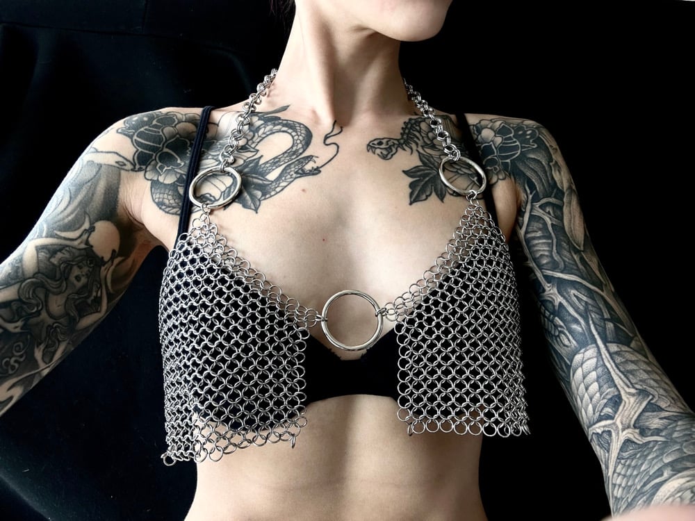 SIREN’S SHACKLES- Size Small Backless Chainmail Halter Top